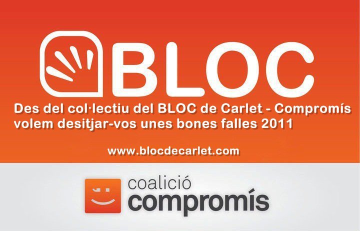 Regidors del BLOC de Carlet amb Enric Morera i Mònica OltraMaria Josep amb la diputada del BLOC-Compromís Mònica OltraMaria Josep Ortega, portaveu del BLOC de CarletEnric Morera, Diputat del BLOC a les Corts Valencianes i portaveu de CompromísMònica Oltra, diputada de Compromís a les Corts Valencianes i portaveu d’Iniciativa
